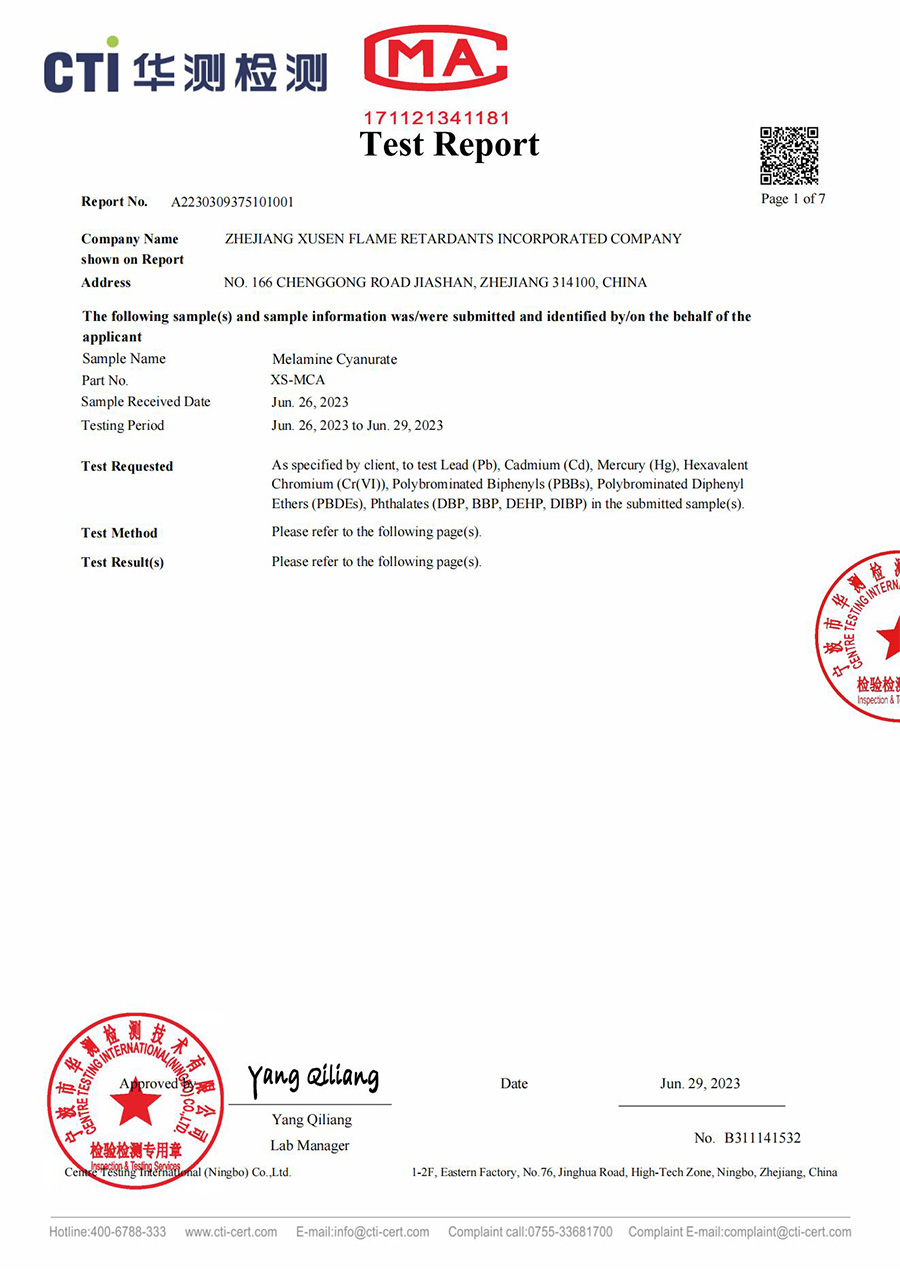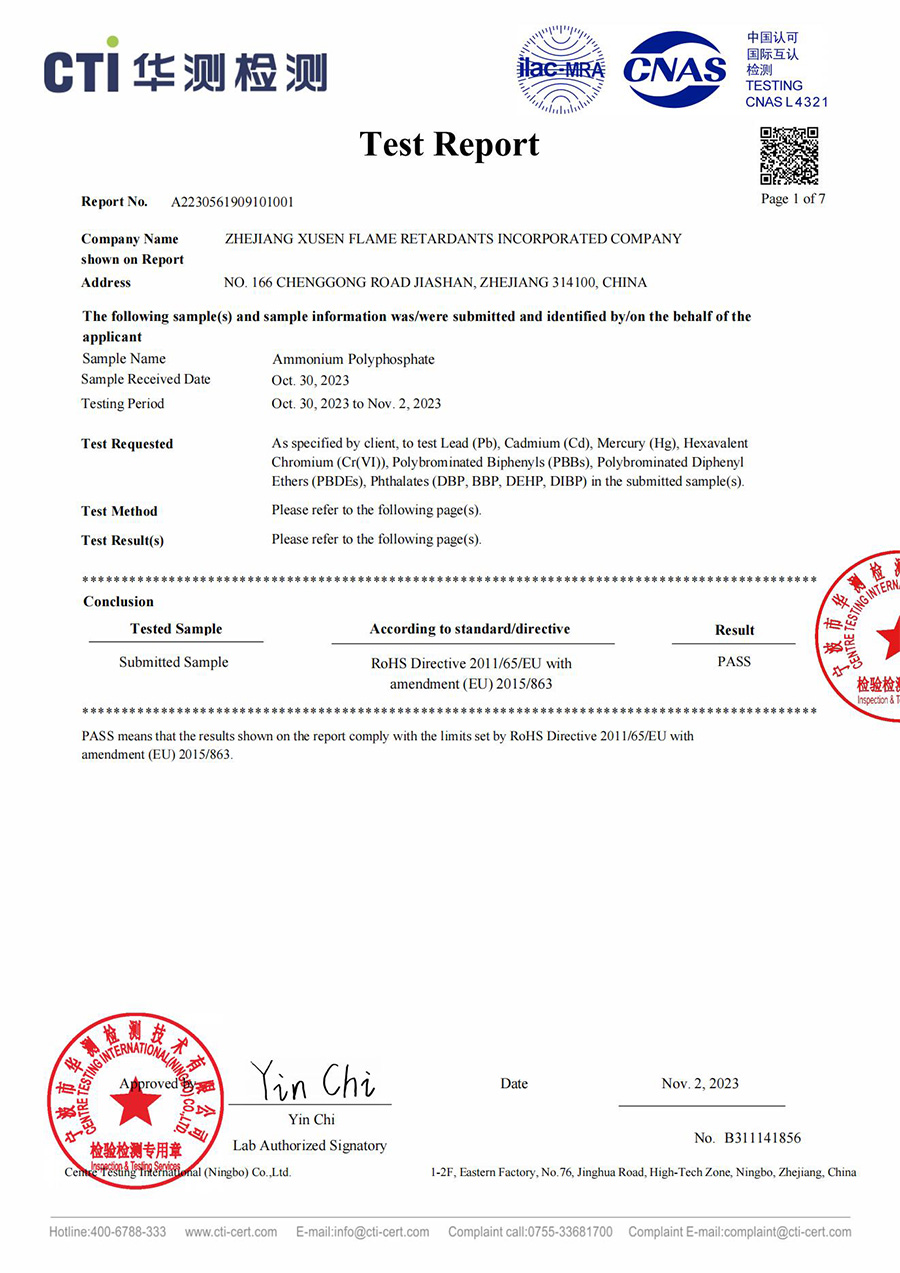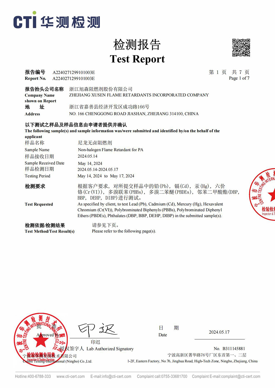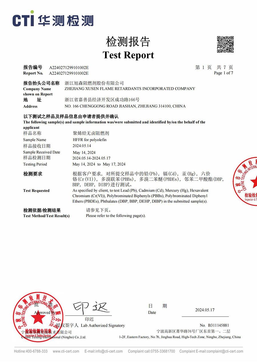 Flammhemmung für Polyolefin ROHS -Testbericht