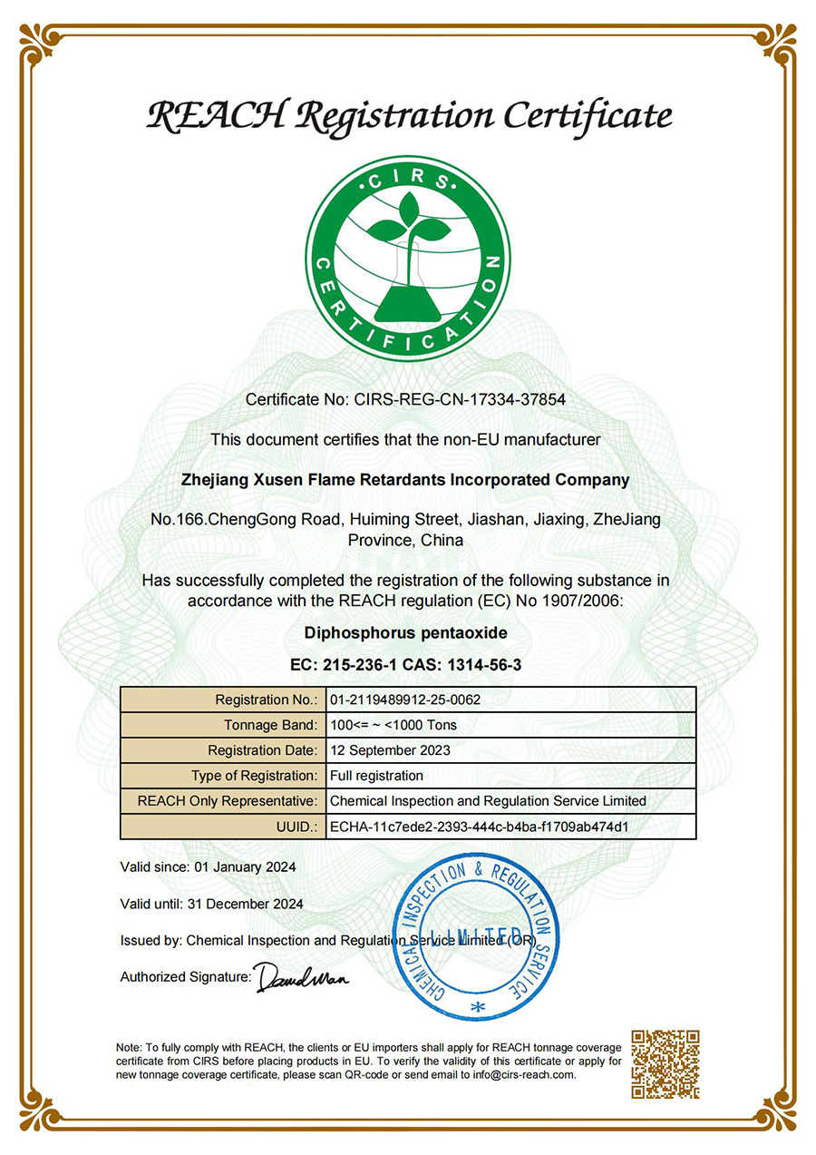 Diphosphor -Pentoxid -Reichweite Registrierungszertifikat